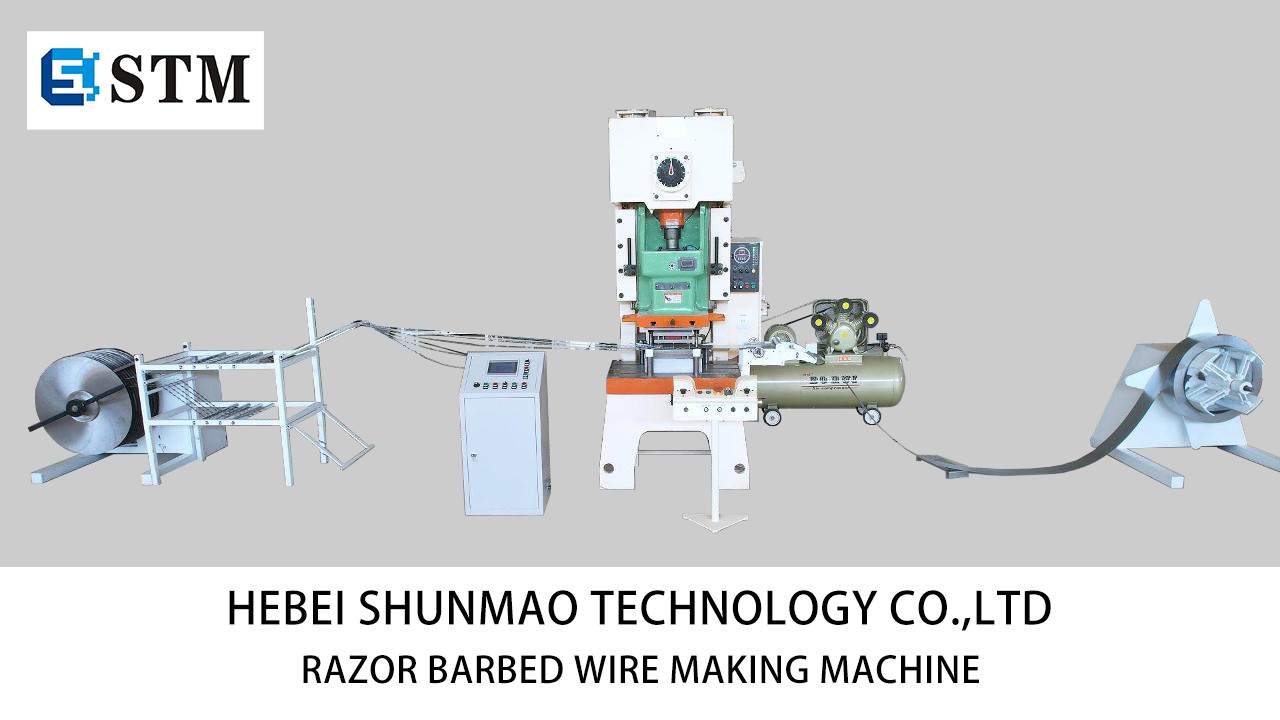 The razor wire machine is composed of the main machine producing strip plates and the coiling machine that coils the wire into the strip plate.